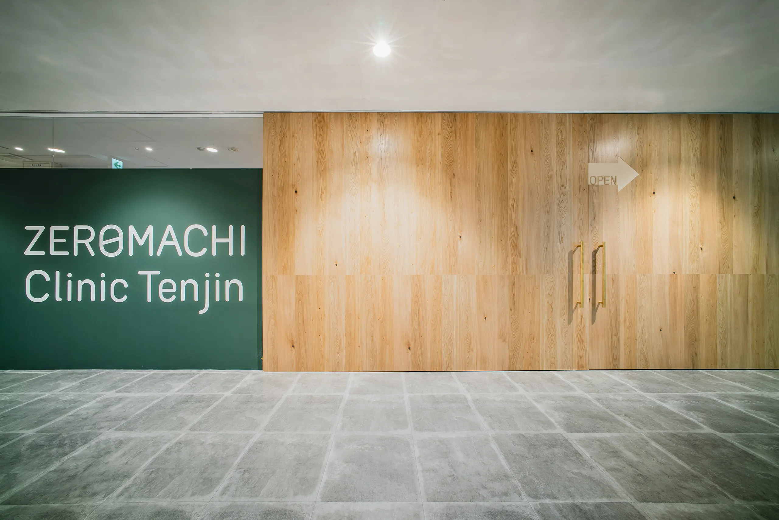 駅直結の商業施設内、奥行約2m延床約30㎡の狭小区画において、アプリとの連携によるミニマムな医療体験・医療空間の実現を目指した。アプリの予約・診療システムにより、待合スペースに同時滞在する患者さんの人数を1~3人と想定して面積を抑えると同時に、保険証の提示や問診表の記入などを省略できることから、従来のクリニックにある受付カウンターをなくし、小さいながらもゆとりのある待合スペースを計画した。また、待ち時間が短縮されることから、平面計画や植栽計画でプライバシーに配慮しつつ、施設通路の突き当りに大きな扉が開いたような開放的なファサードを試みている。