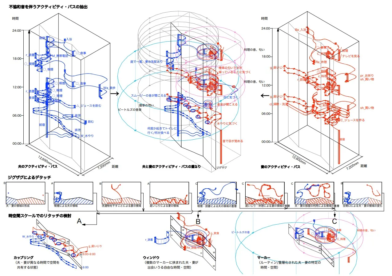 While ensuring ample and necessary private rooms, we zig-zaggedly extended the existing balcony. This expansion reconfigures it into a "garden-like" space where sightlines and circulation paths can intersect and evolve over time. The aim was to create a home that respects the couple's desired sense of individual space while simultaneously fostering and connecting their relationship.