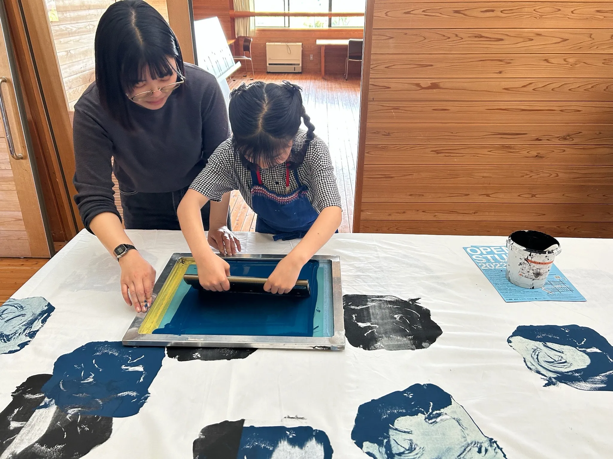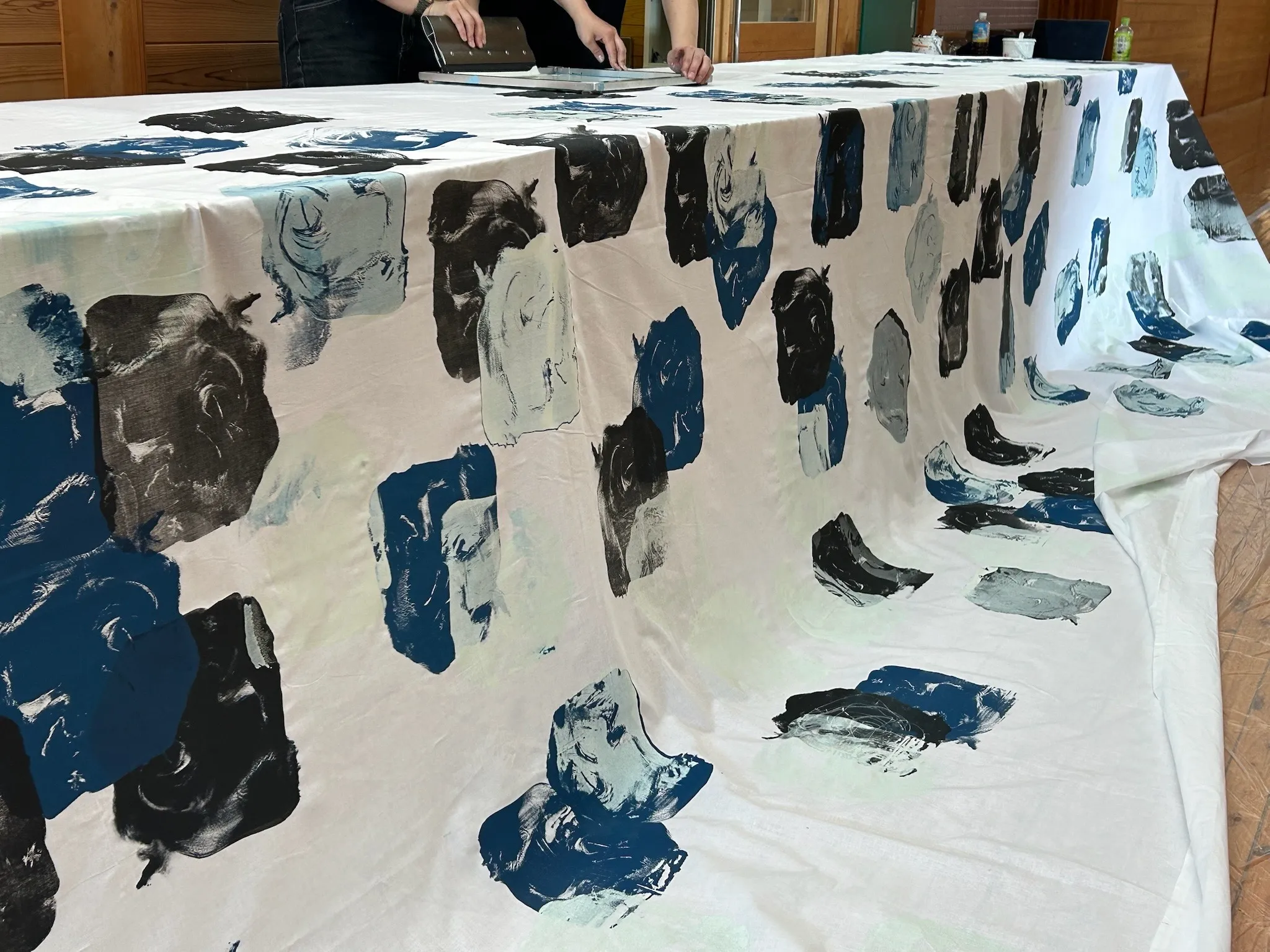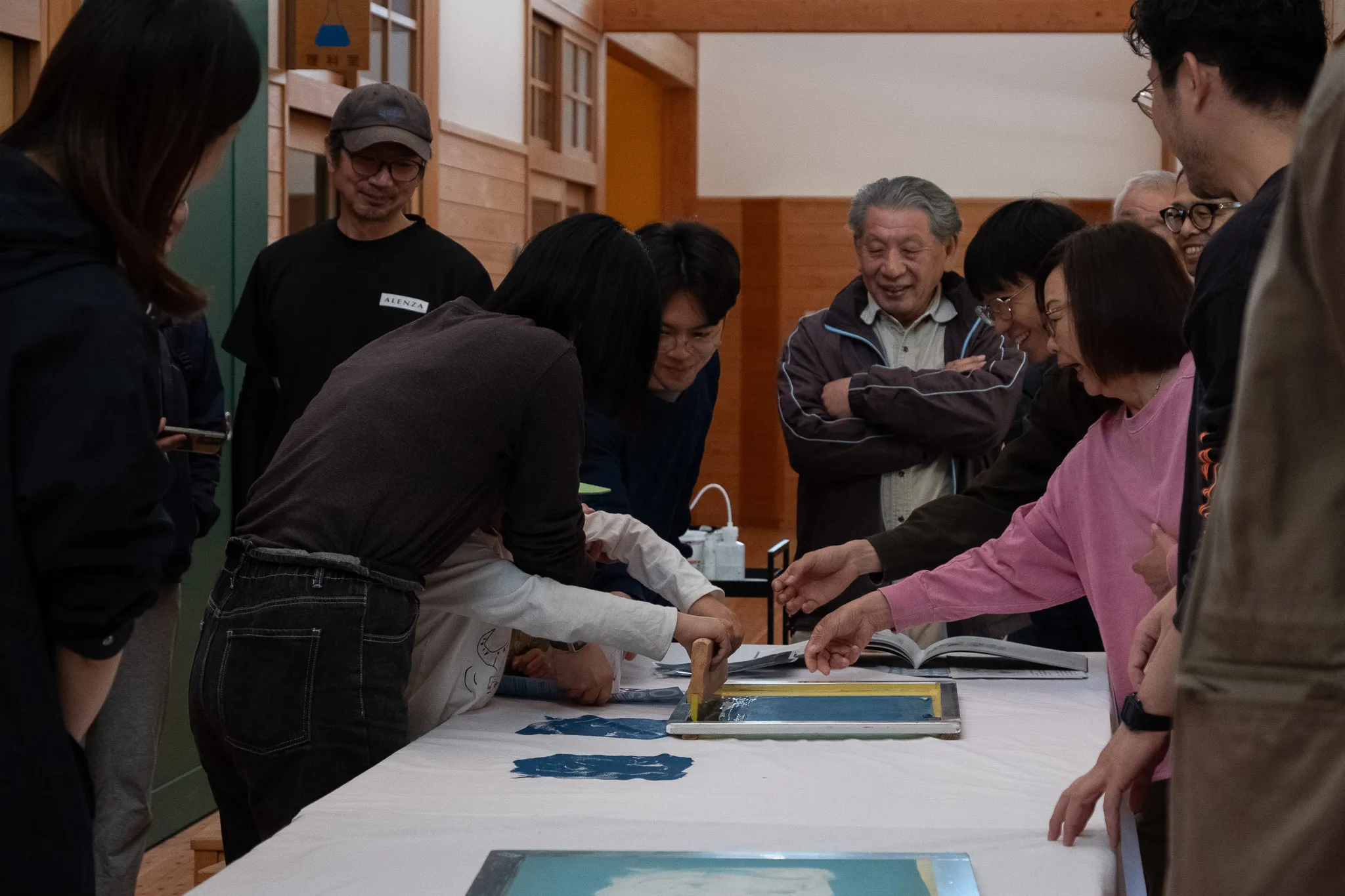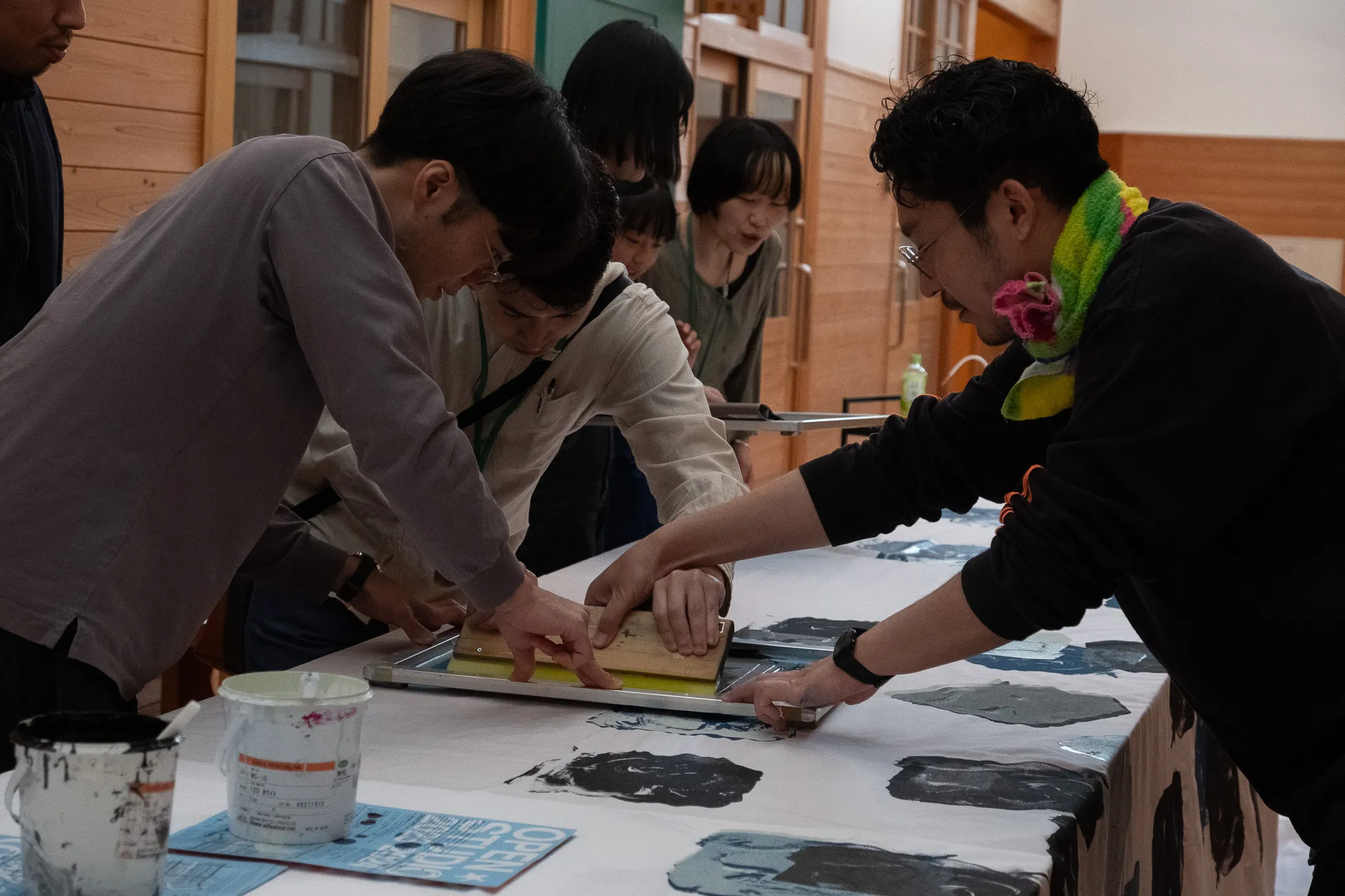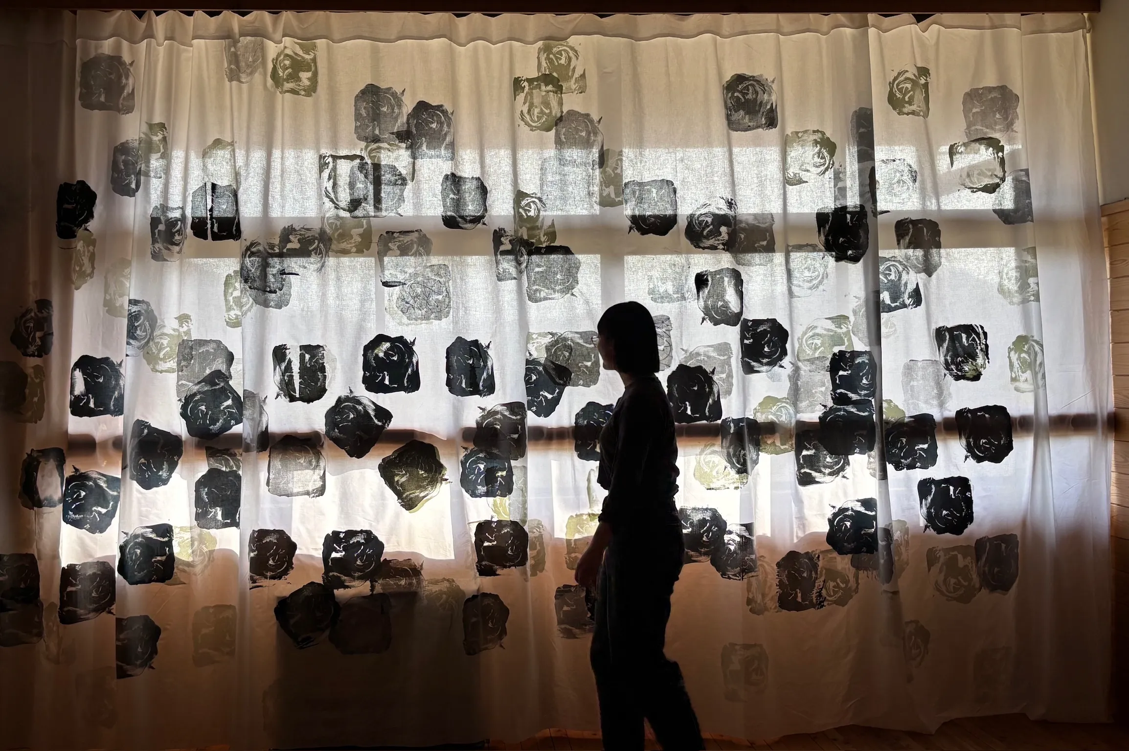 We've started using these spaces as a base for artists (a multi-purpose studio and warehouse). For the studio's grand opening, we held a curtain-making workshop led by printmaker Yuzu Miyauchi.