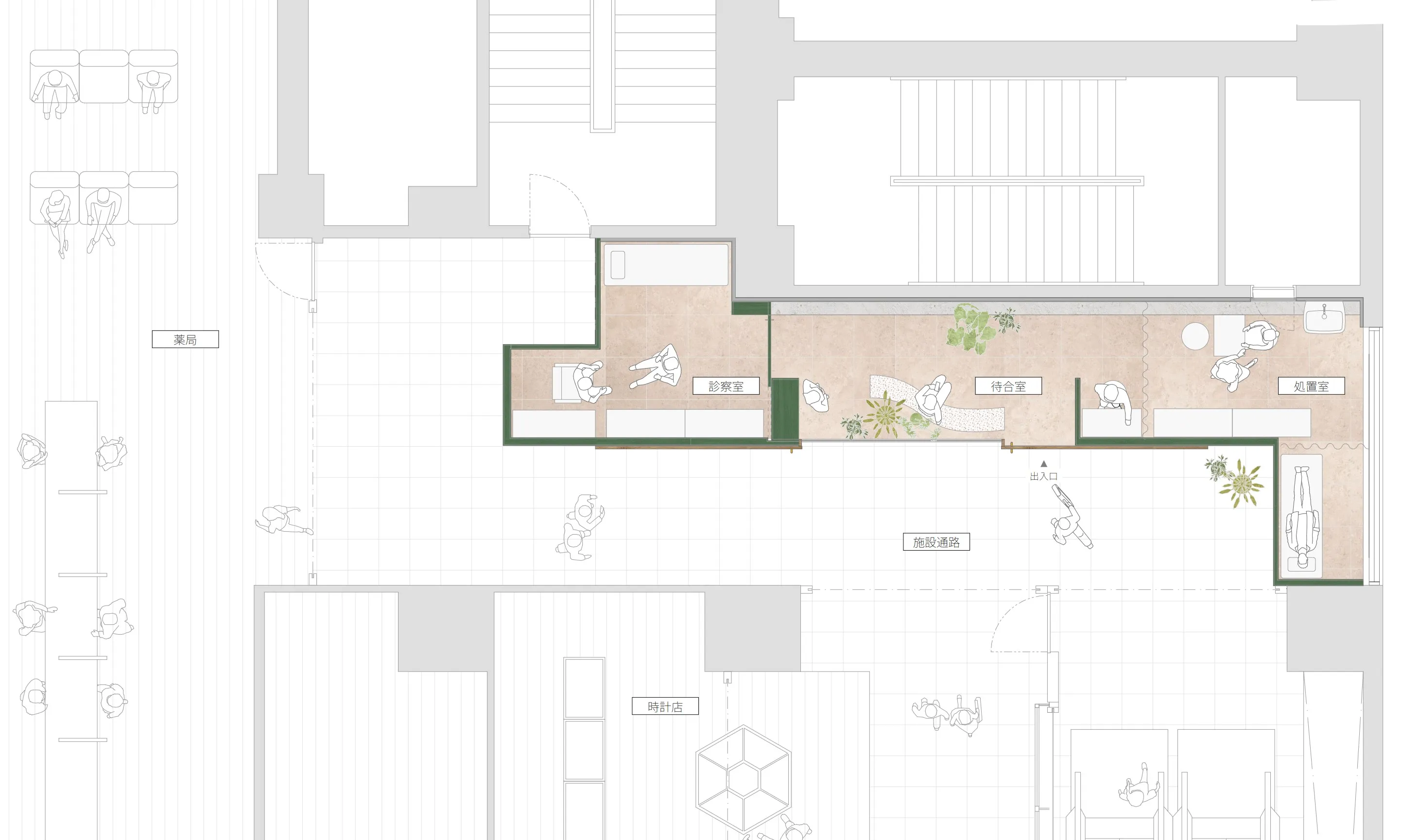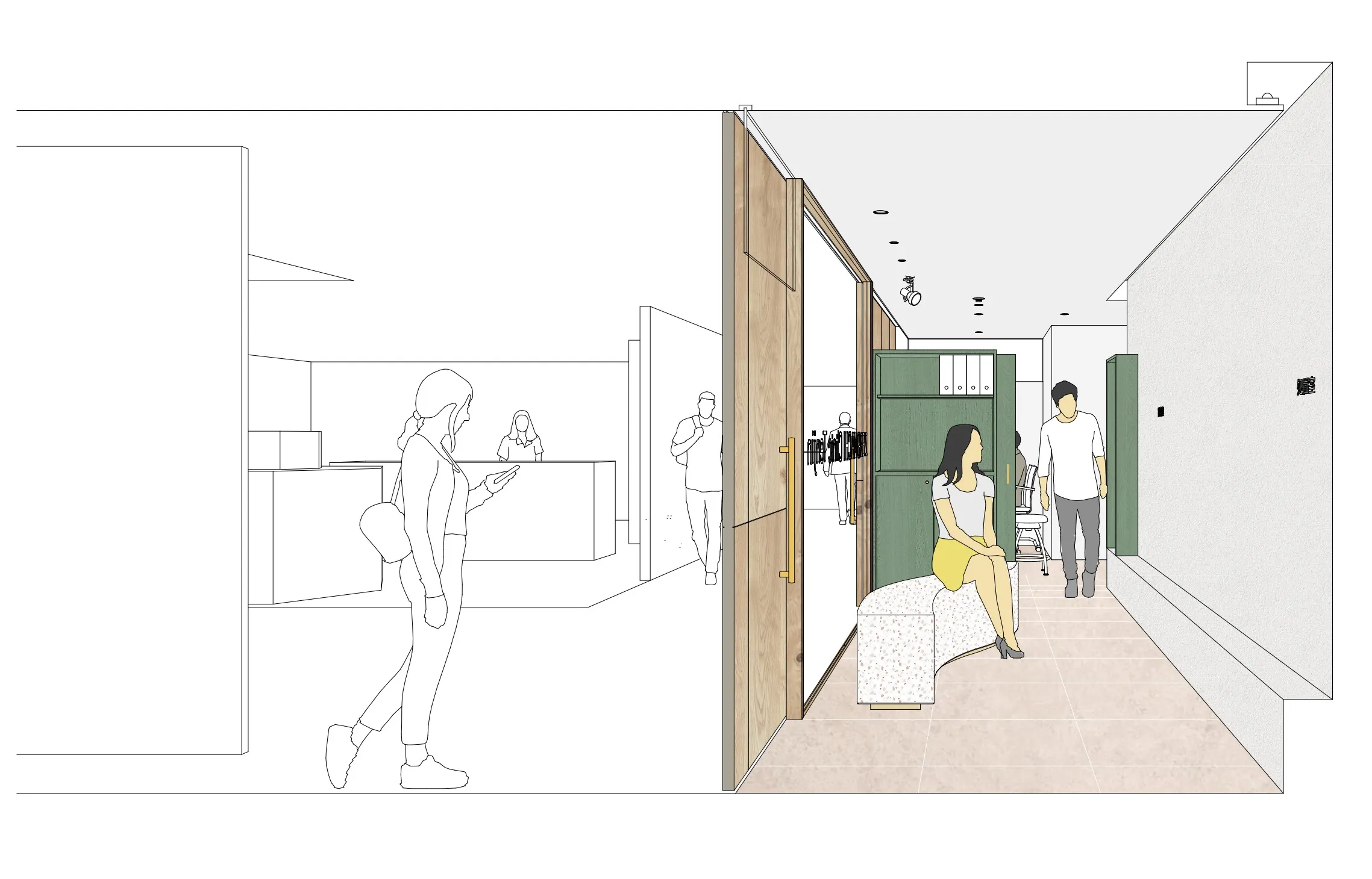 This project involved designing a prototype for an app-integrated clinic within a compact, roughly 30-square-meter section of a commercial facility directly connected to a train station.