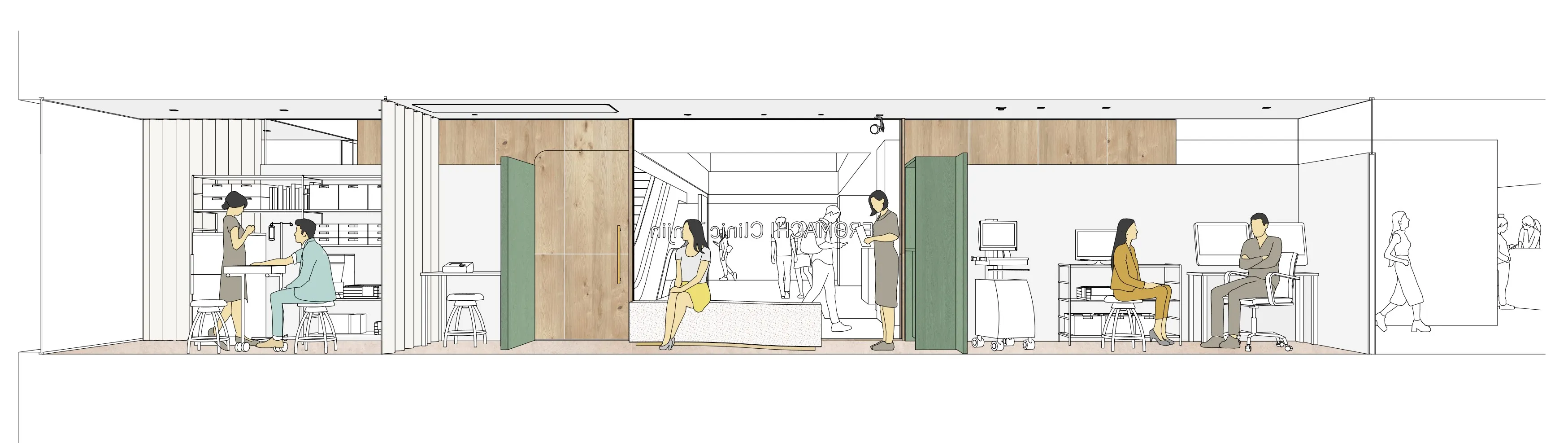 Our goal was to create an inviting medical space that is open to the city, achieved through an expansive facade, while carefully maintaining patient privacy throughout the design.